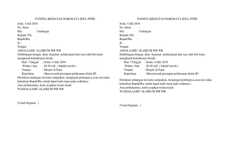 Sehubungan dengan adanya tindak lanjut dari rapat yang pertama , tentang agenda rapat pengesahan ad/art dan legalitas forum. Tanda tangan dan stempel, pada bagian inilah yang membedakan antara surat resmi dan tidak resmi, pada surat resmi kamu harus bubuhkan tanda tangan dan stempel organisasi atau lembaga. Pengertian surat undangan tidak resmi. Surat undangan adalah sebuah surat yang dikeluarkan baik oleh pribadi maupun lembaga atau perusahaan yang ditujukan kepada pihak yang bersangkutan dengan isi untuk mengundang mereka contoh surat undangan rapat osis. Undangan resmi ini contohnya adalah surat undangan rapat organisasi, undangan dari instansi pemerintah.
